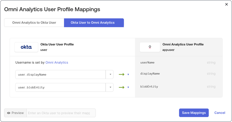 The last step is to map the Okta profile attribute to the Omni application attribute.