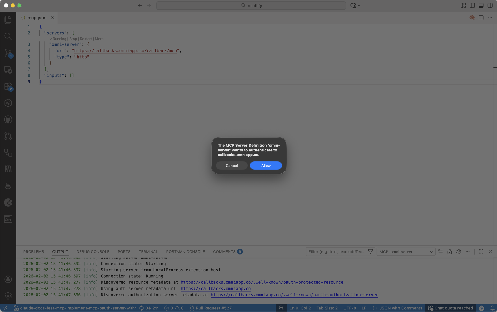 MCPand select MCP: List Servers. - Click the Omni server in the list.