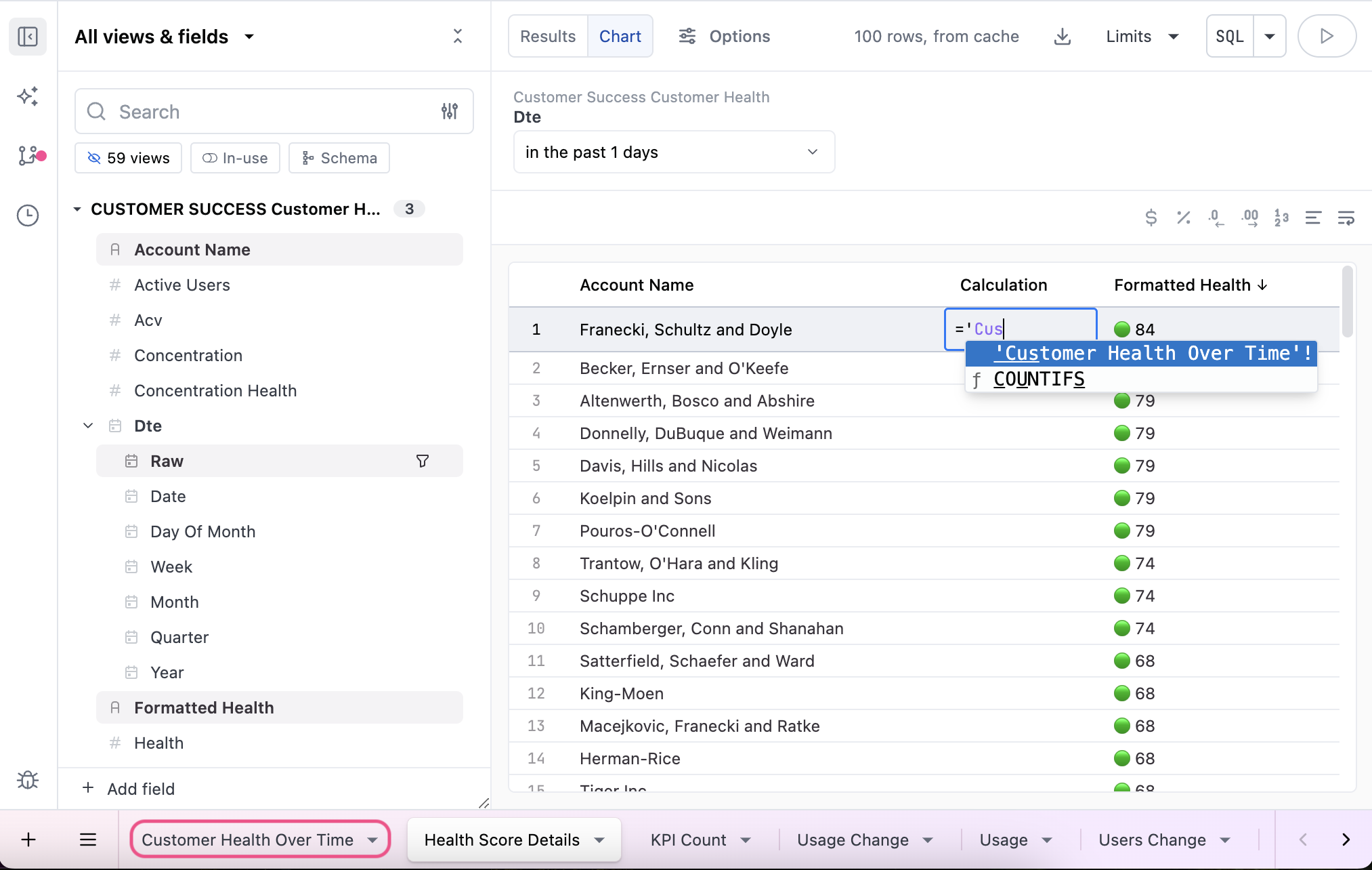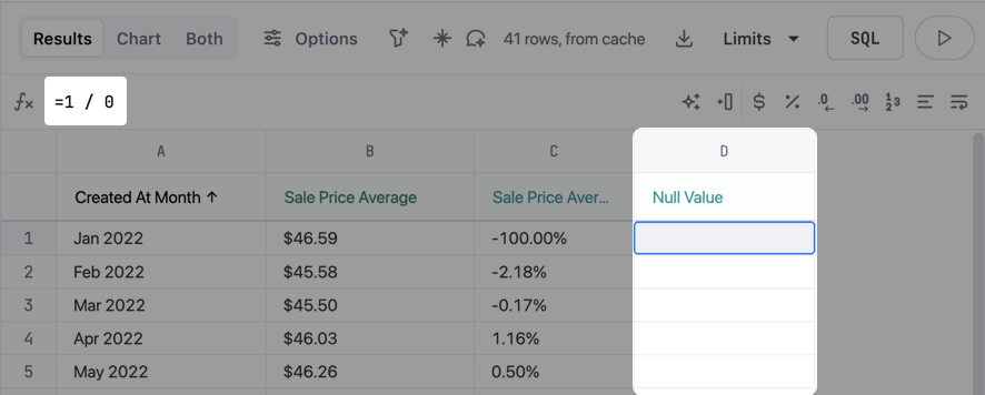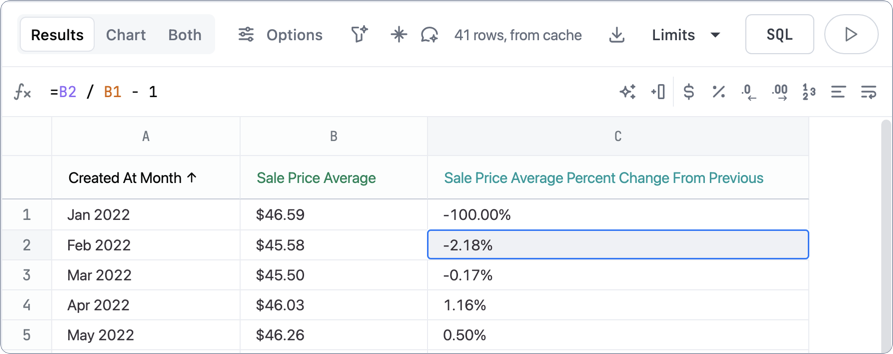Build the calculation using Omni’s supported functions. The following image shows an example of a
