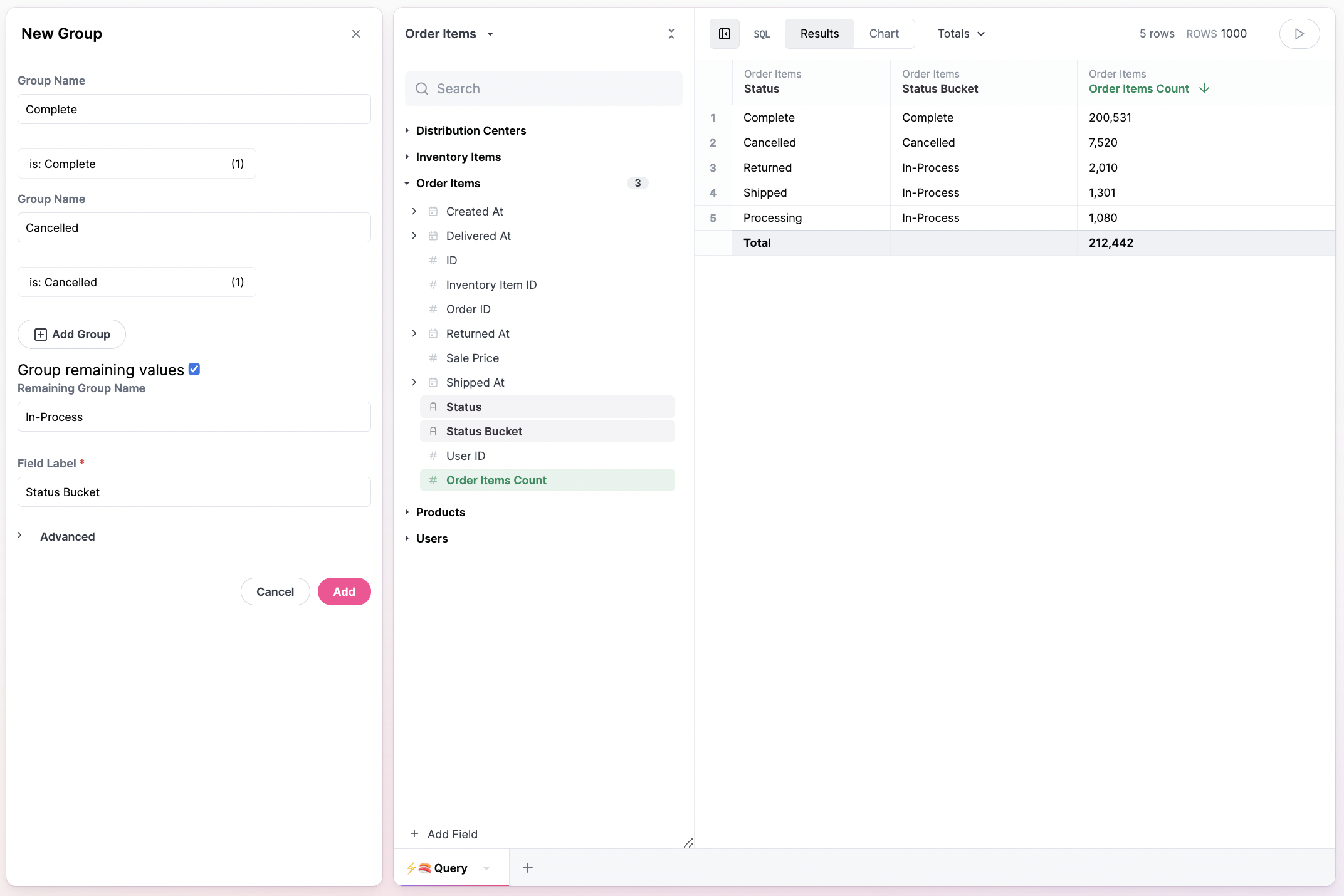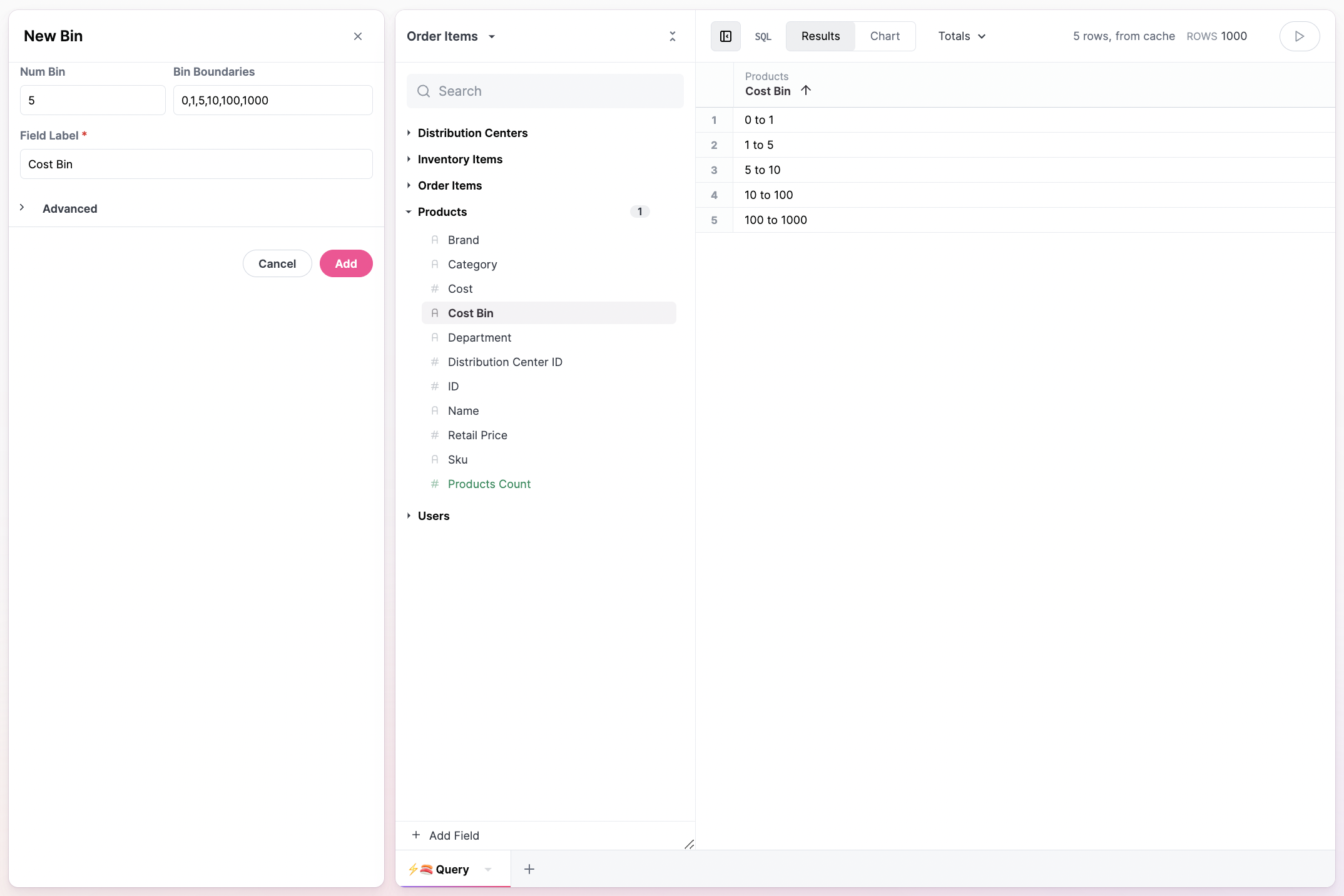 A common workflow is looking at a distribution and then trying to understand patterns in the aggregation - percent of users by lifetime orders; distribution of brands by count of SKUs, distribution of sessions or activities by user. For these analyses we can use saved views and binning to share distribution of aggregates. We got through the following multi-stage analysis to do this with UI, and we’ll share an alternative in SQL.Setup