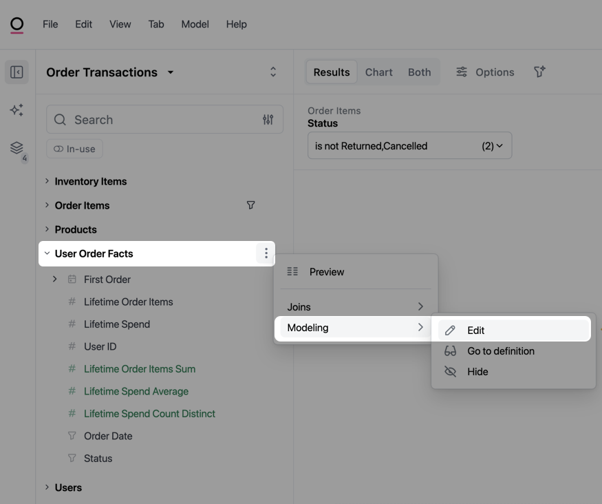 Click the â ‡ (three dots) next to the view name, then select Modeling > Edit: