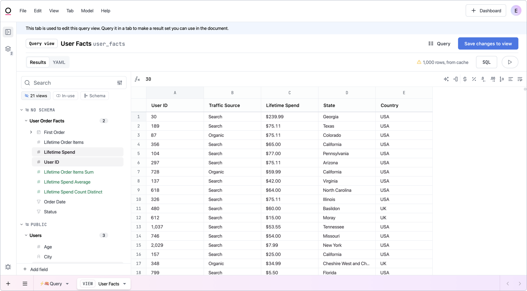 user_facts - Click Create query view.