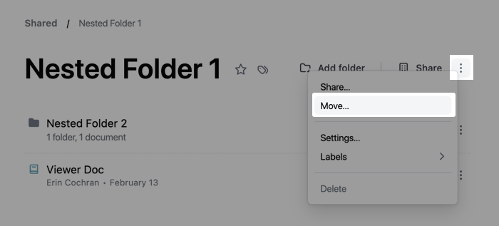 Folders can only be deleted if they’re empty. To delete a folder, click the folder’s Options menu (three dots) and then Delete.Labels
