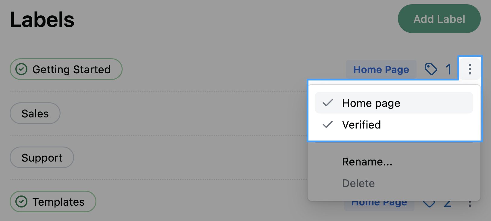 - Rename a label by clicking the options menu (three dots) next to the label and selecting Rename.