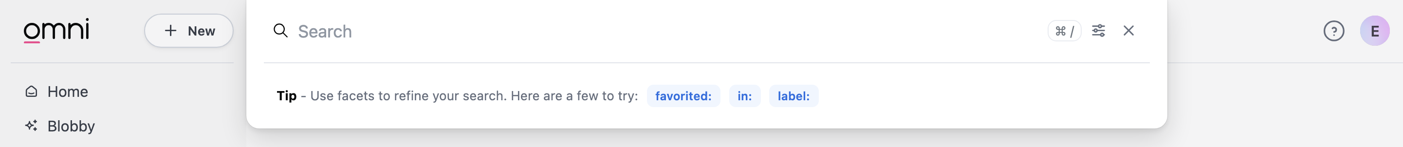To use search facets, type the facet name followed by a colon in the search box. As you type, Omni will suggest relevant options based on the facet type. You can combine multiple facets to create precise search queries. For example, to find all verified dashboards created by a specific user in your Marketing folder, you could search for:Find verified dashboards by Jane in Marketing folder