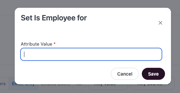 - Select the User Attribute to add a value for the email-only user