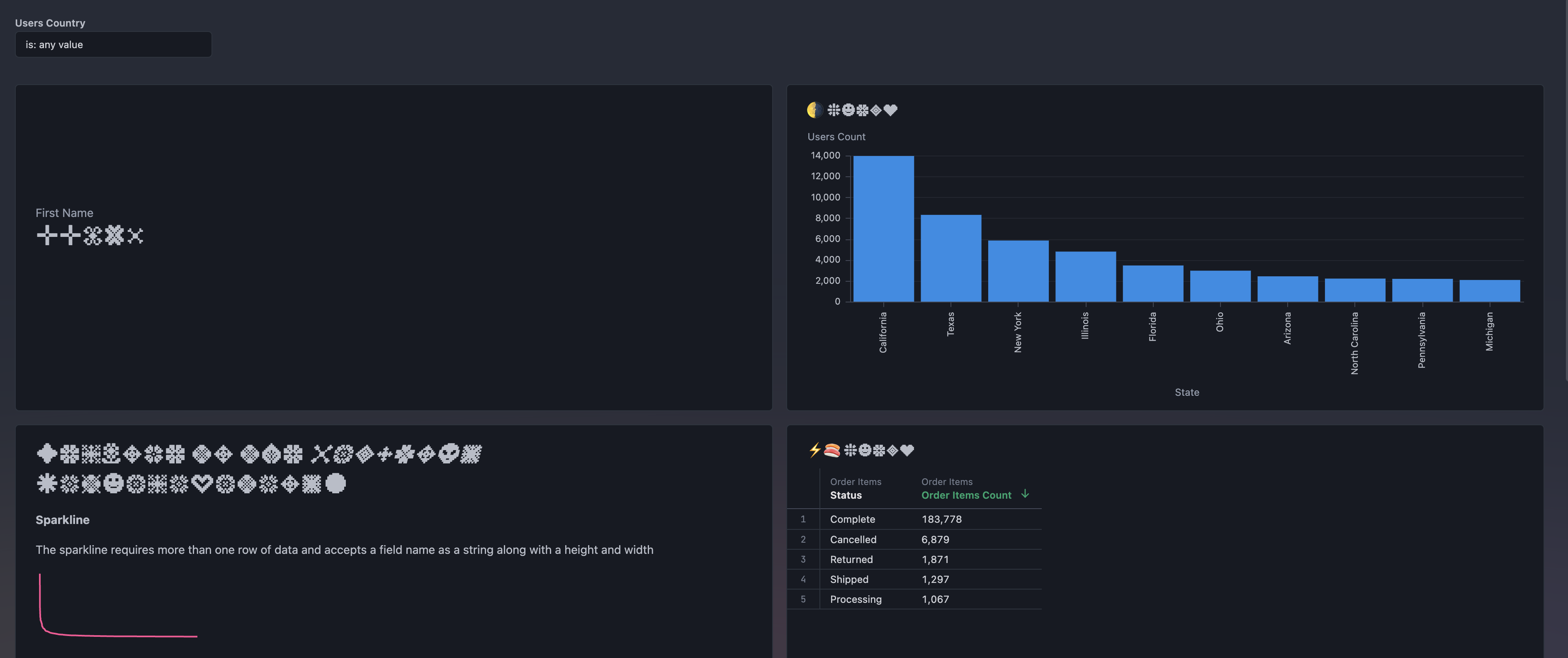 | dashboard-tile-text-code-font-family | The font family of a markdown <code> element in the embedded dashboardâs markdown tiles. Pass a link to a remote woff2 file for custom font usage. | woff2 url |