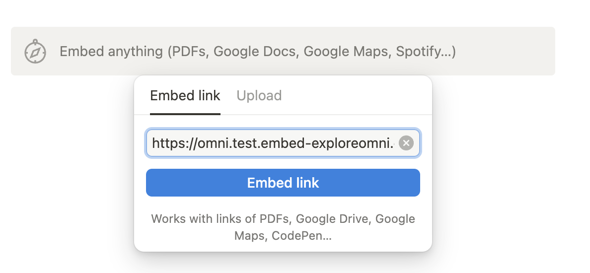 /embedcommand to create an embed component. - Paste the Omni URL into the field: