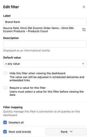 Instead of hardcoding row limits on charts, you can let dashboard viewers control how many items they see. For example, users could switch between viewing the top 10, top 15, or top 20 products by sales.This guide walks through creating a dynamic Top N filter using a