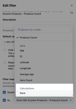 RANK calculation and dashboard filter mapping.Requirements