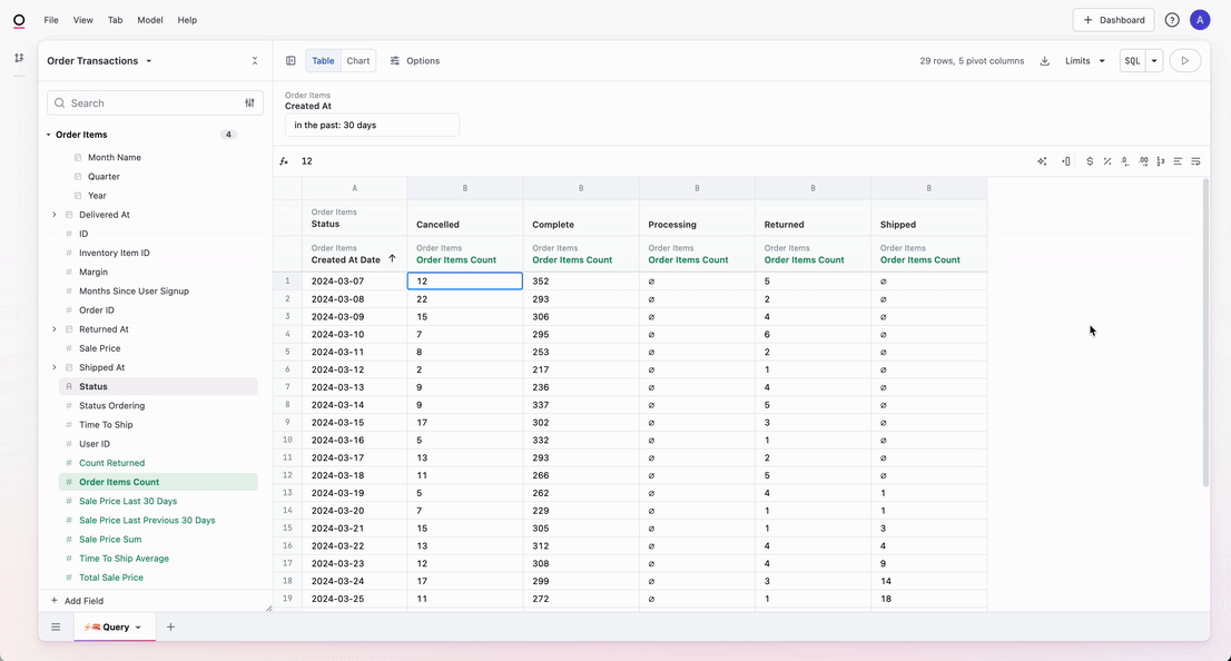 - Create a new measure. You can do this by either right clicking on the field and selecting Aggregates or by duplicating an existing measure.