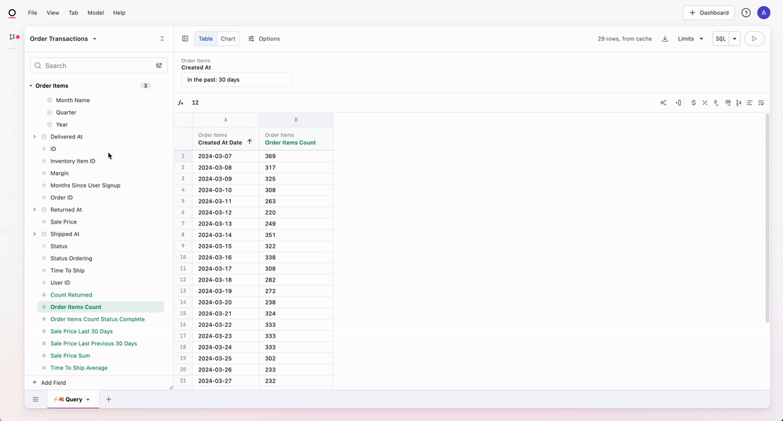 - In the field browser, right click on the measure you just created and select Modeling > Edit.