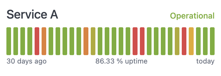 This example shows the last 30 days of data, bucketing the colors along a red to yellow to green gradient. It also adds colored text to explain the current status.