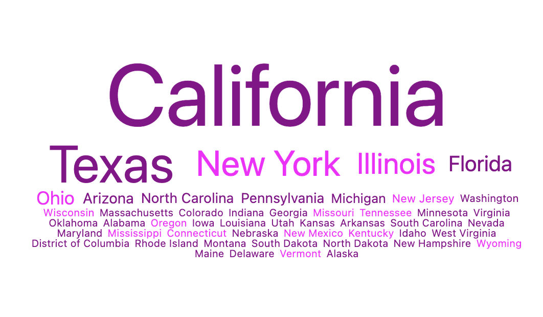 Fonts are clamped between--min-font-size and --max-font-size. If you use container query units (cqw) for the max font size, the type will adjust to the width of the dashboard tile. Note that the max font size is a bit of a âmagic numberâ meaning youâll have to adjust it based on the length of the words in your data set, the number of words in the results, and the desired size of the tile. The values in the example below were selected for this particular data set.