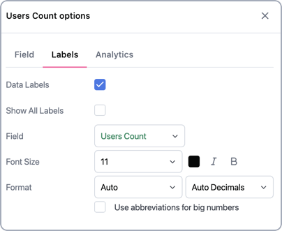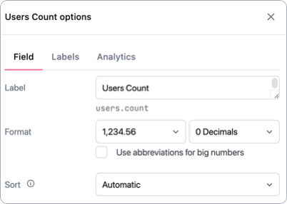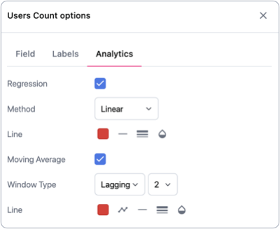 Each series / field offers configuration in addition to the axis configuration. In this area the data itself can be controlled (vs the axis or facet like color). To configure the or generally follow the corresponding settings.