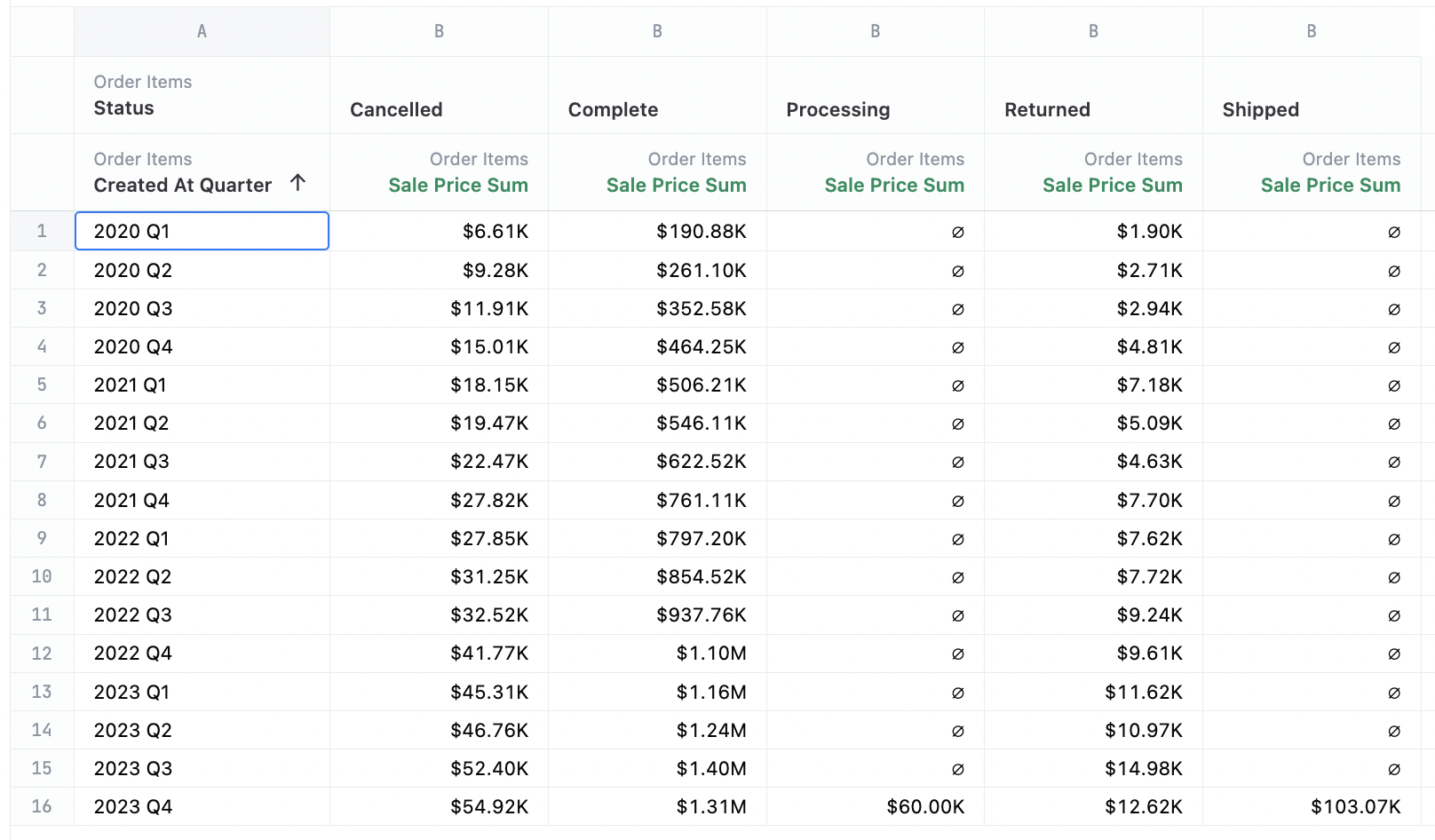 - With time fields, order will be automatically set to ascending; other data types will obey the table ordering when graphing