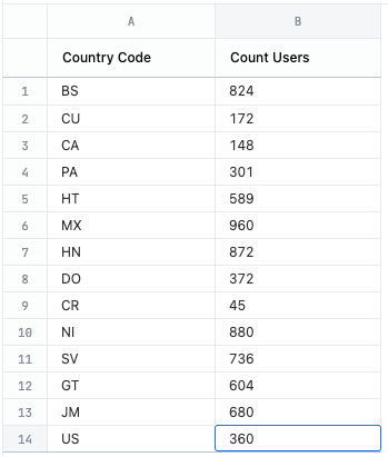 Country region data can be mapped against your dataset by either country name, 2-digit country code or 3-digit country code.| Dataset | Map |