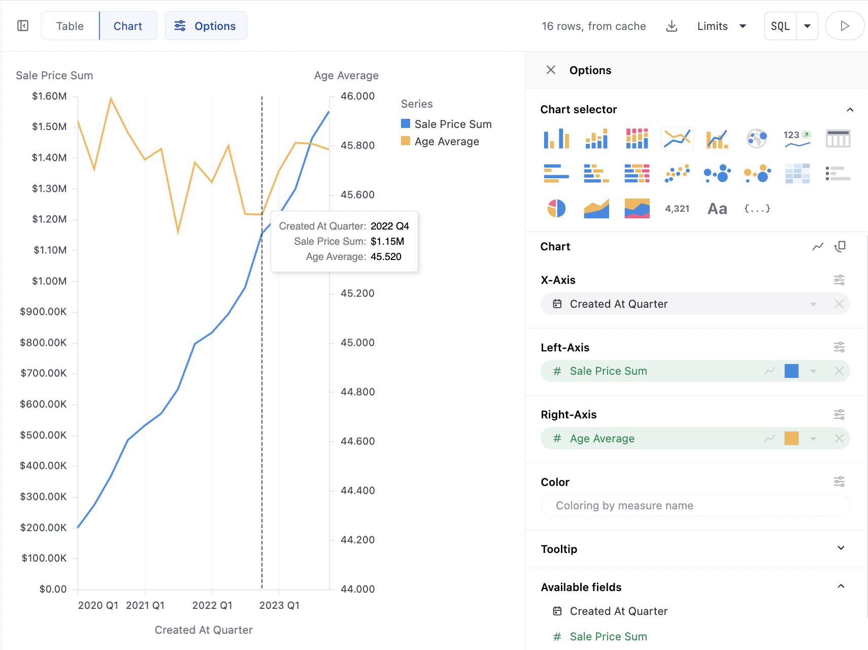 - With time fields, order will be automatically set to ascending; other data types will obey the table ordering when graphing