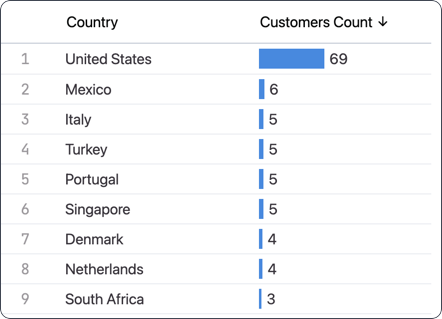 Numeric columns can be displayed as bars in the table, allowing you show relative sizes. Select Bar from the Display as dropdown to view configuration options.