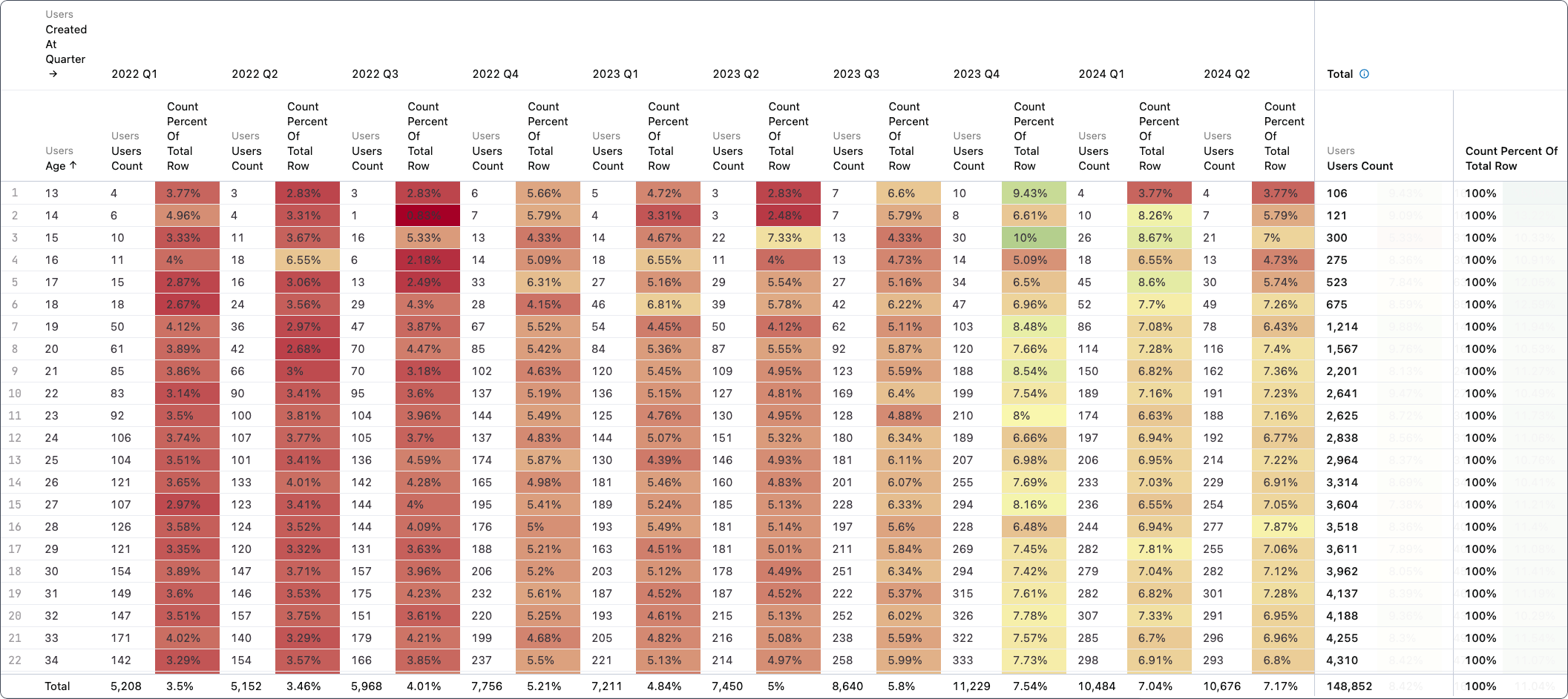 Drag and drop fields to pivot the table. Pivots can also be hidden, but must be hidden from the table itself and they will be indexed to the value of the pivoted series. This means if you hide the first pivot, saystatus: Returned, the hide is not indexed to the first pivot, but rather status: Returned.
